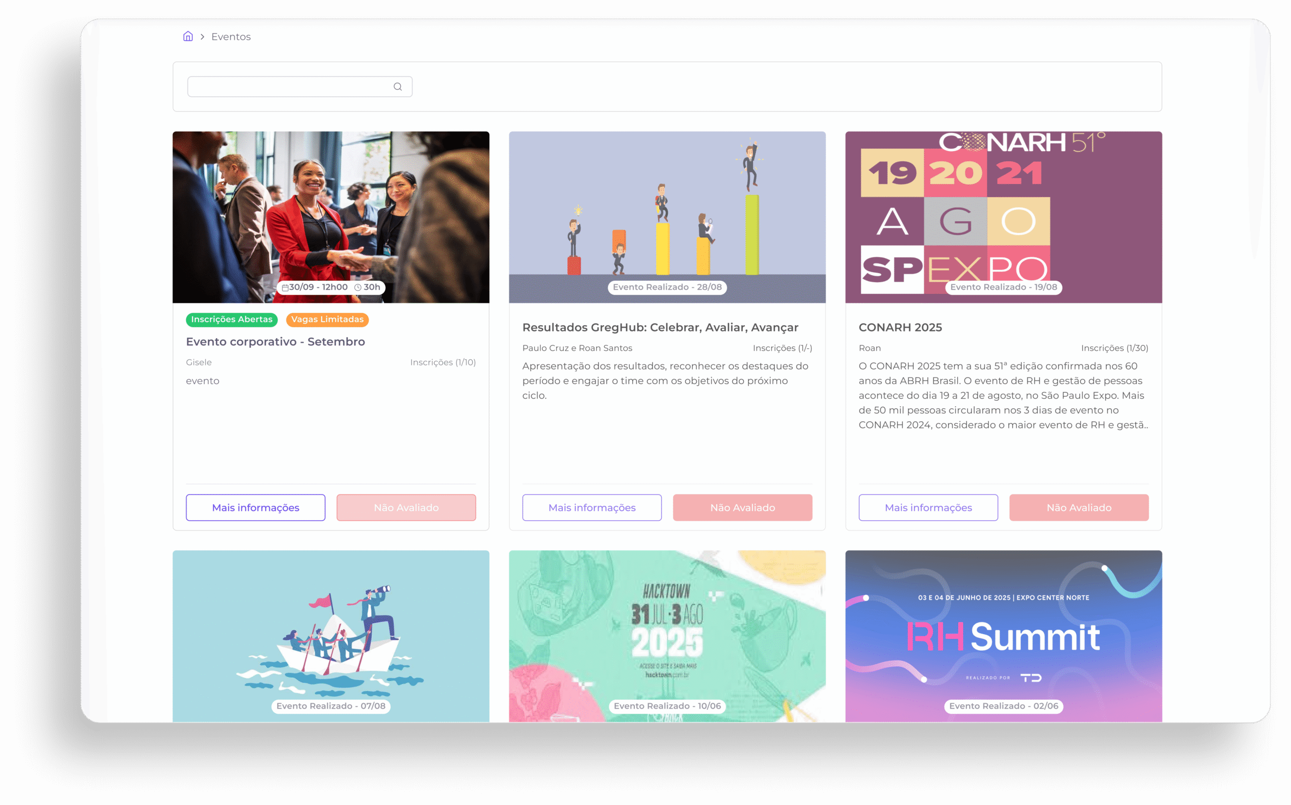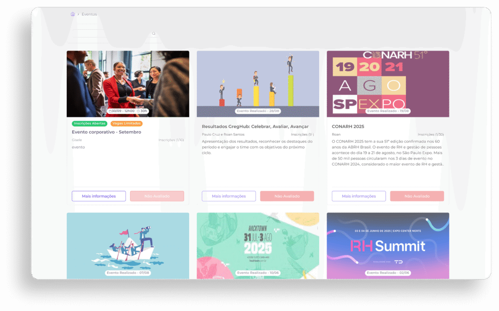 Planeje e registre os ritos culturais da empresa com controle e acompanhamento de participação.