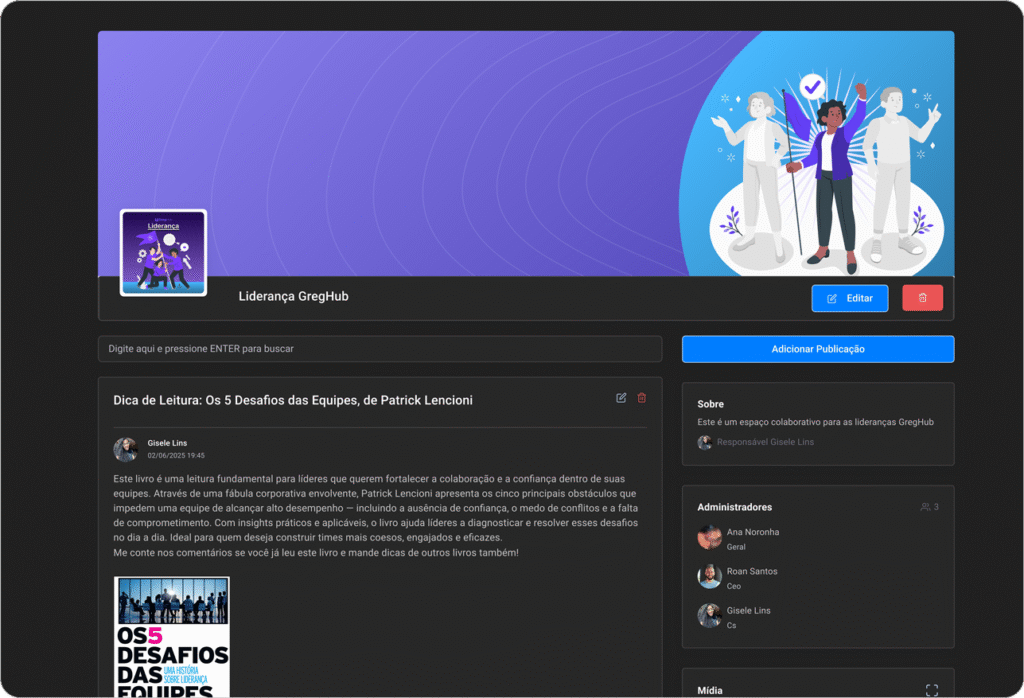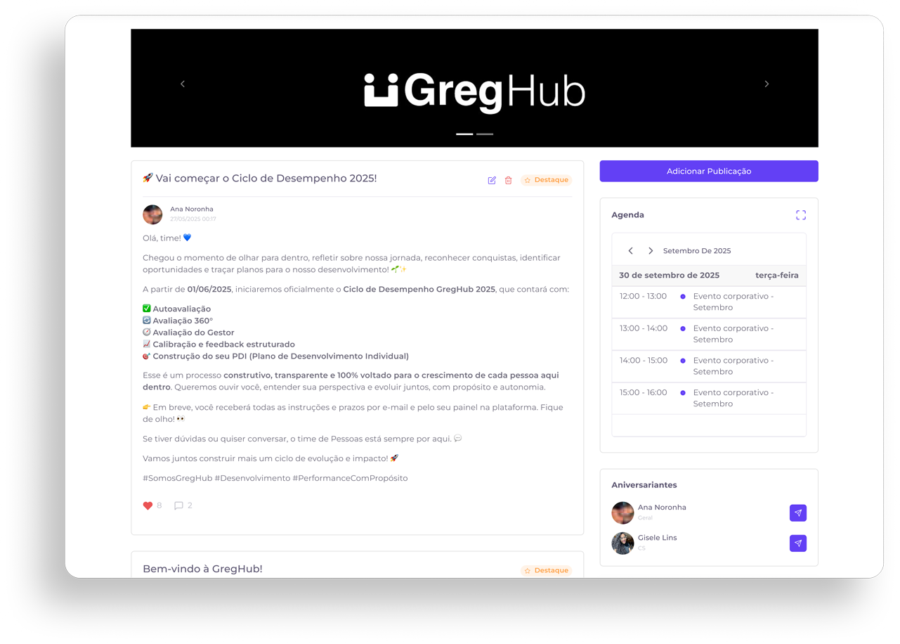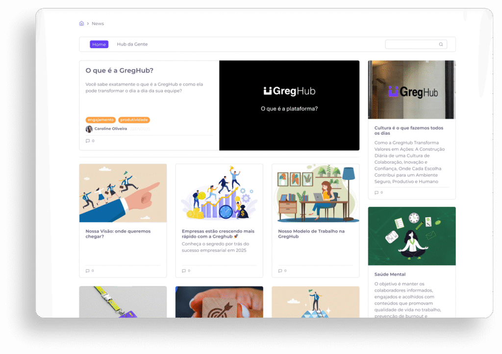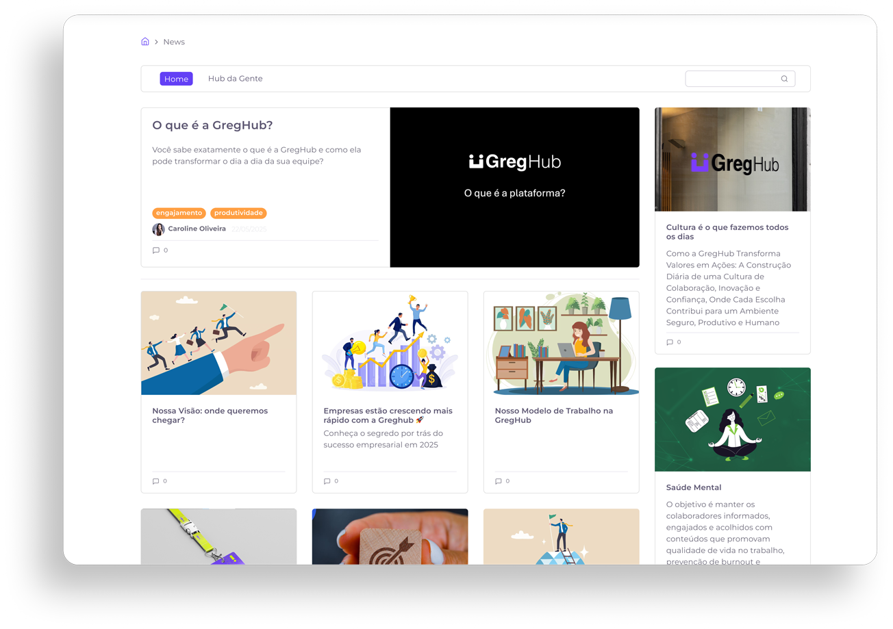 Centralize comunicados, conquistas e informações importantes em um feed interativo para toda a empresa.