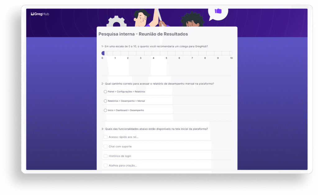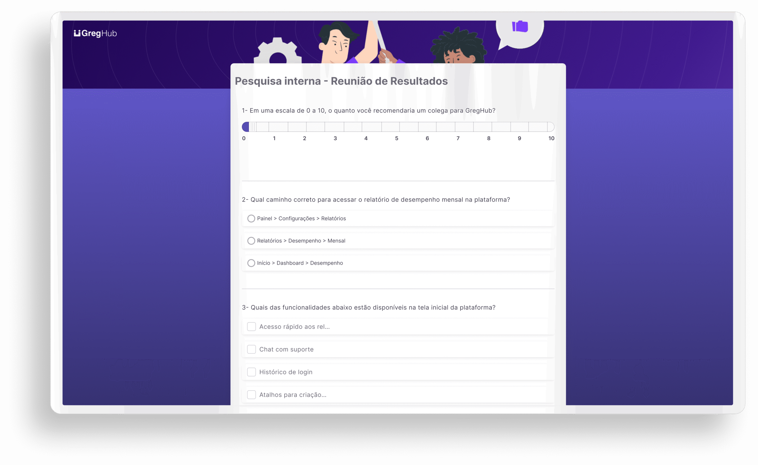 Acompanhe o clima e a percepção dos colaboradores em tempo real com pesquisas personalizadas.