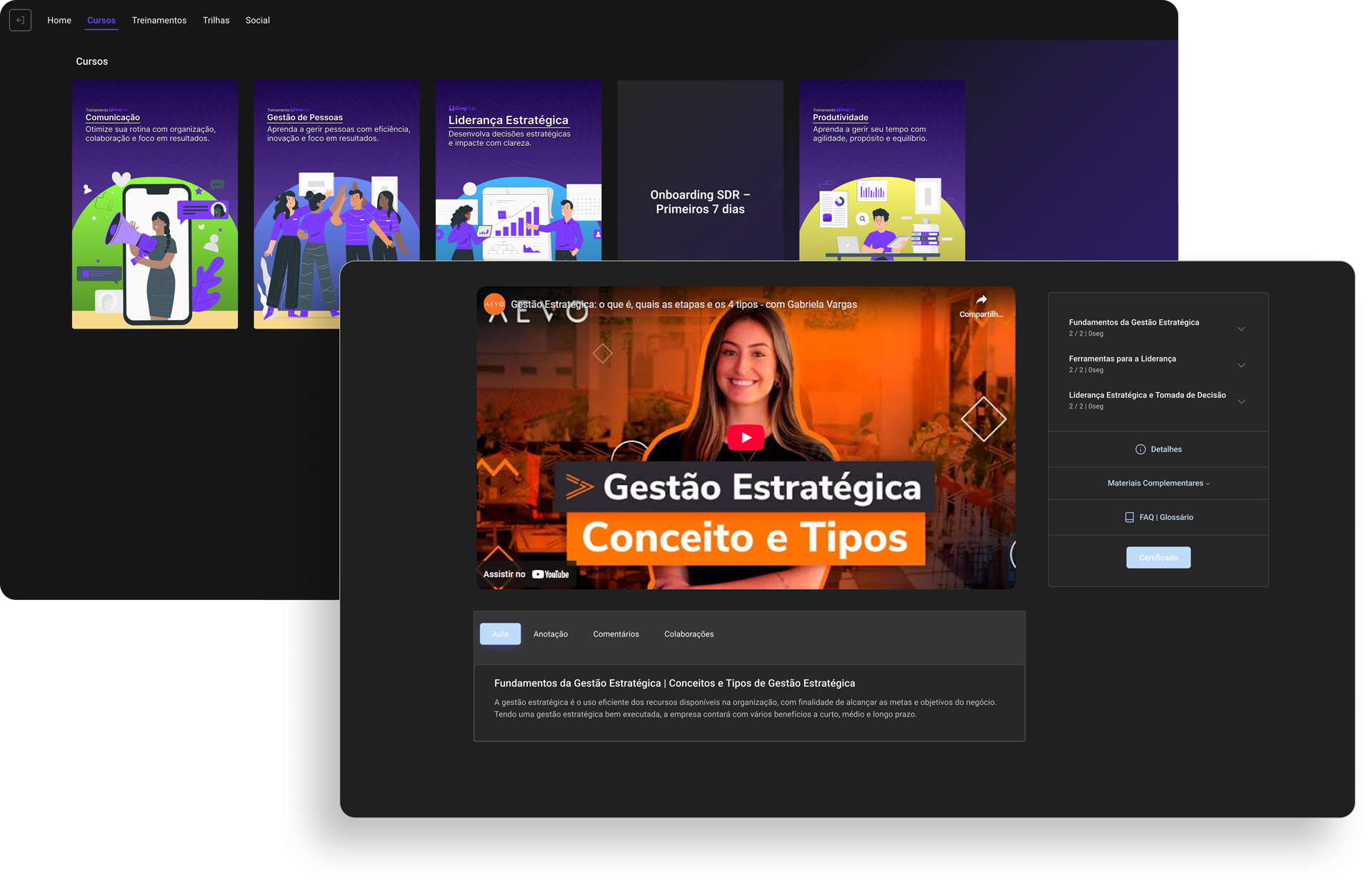Crie cursos internos sob medida com controle total da experiência de aprendizado.