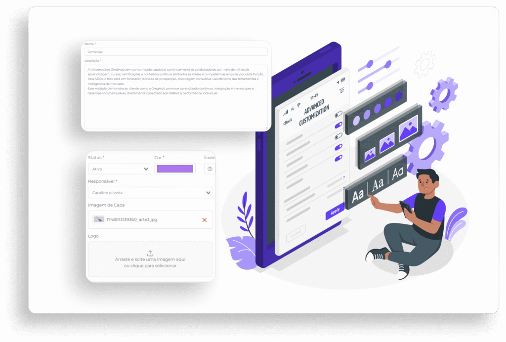 Construa jornadas de aprendizado personalizadas para diferentes áreas, cargos ou competências.