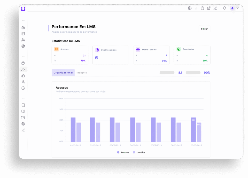 Acompanhe a performance do aprendizado com dados claros e acionáveis.