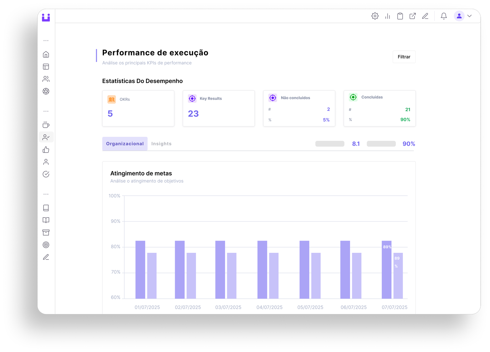 Conecte o desempenho do colaborador à entrega de metas, tornando a avaliação mais justa, baseada em resultado.