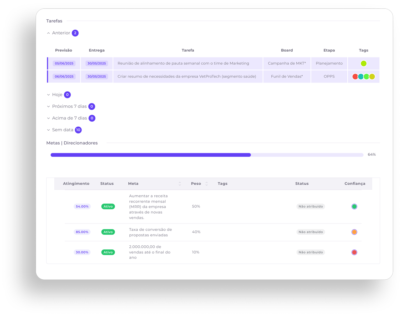 Centralize projetos, tarefas e times em um único sistema, com visibilidade real para líderes tomarem decisões e garantirem entregas no prazo.
